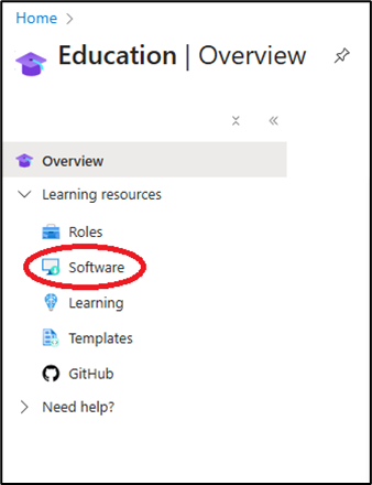 4. Locate the Learning Resources section, and select the Software tab.