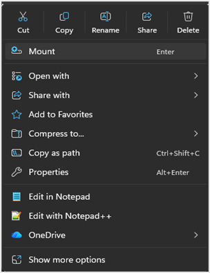 8. Locate and right-click the download file, and select the Mount option to open the file as a virtual disc